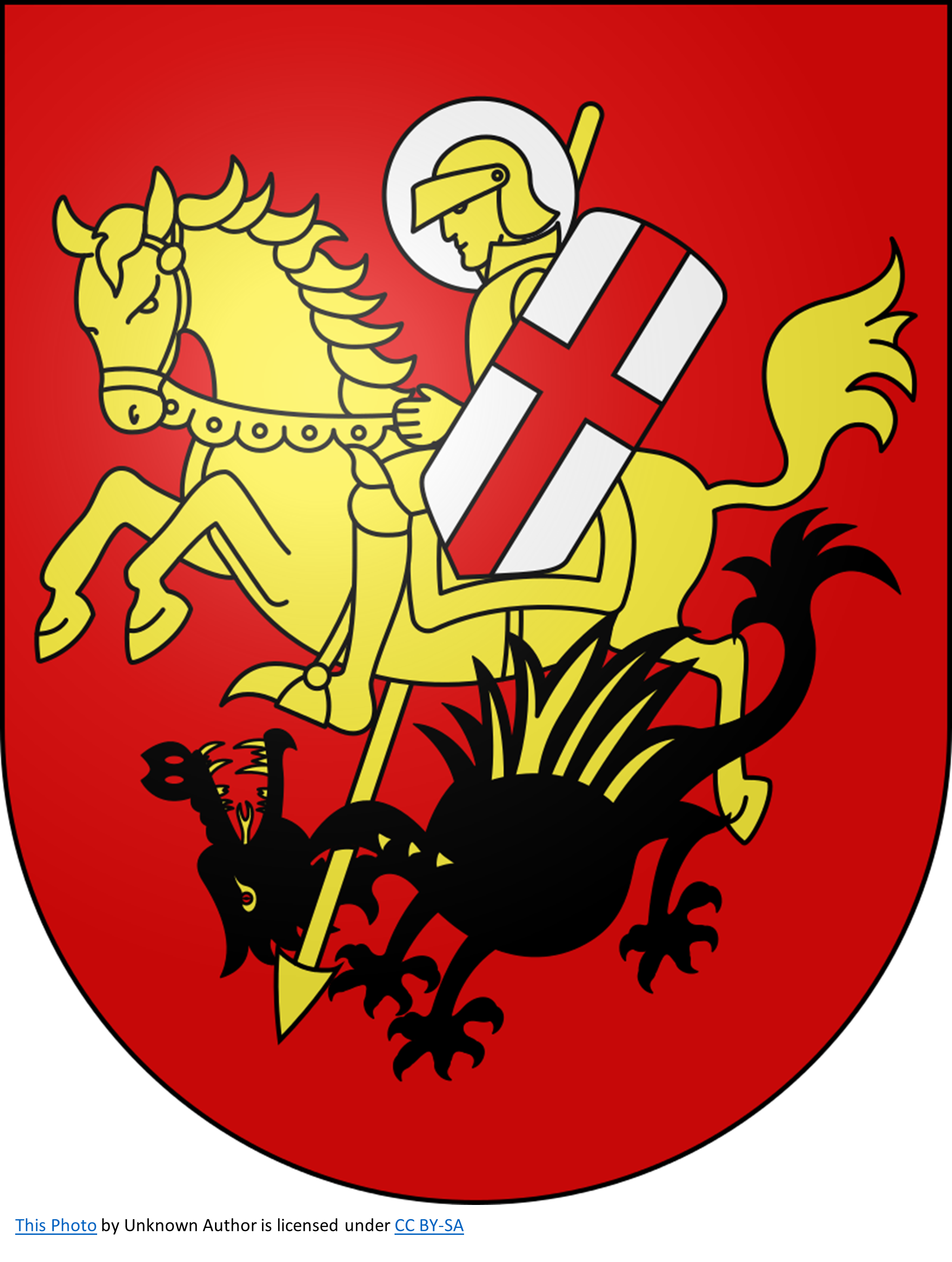 The true circumstances and date of his martyrdom are uncertain, and the accounts soon became embroidered with sometimes contradictory details. The story of the dragon is not found before the Twelfth Century. In the East, St. George (ho megalomartyr), has from the beginning been classed among the greatest of the martyrs. In the West also his cultus is very early. Apart from the ancient origin of St. George in Velabro at Rome, Clovis (c. 512) built a monastery at Baralle in his honour. Arculphus and Adamnan probably made him well known in Britain early in the eighth century. His Acts were translated into Anglo-Saxon, and English churches were dedicated to him before the Norman Conquest, for example one at Doncaster, in 1061. The crusades added to his popularity. William of Malmesbury tells us that Saints George and Demetrius, "the martyr knights", were seen assisting the Franks at the battle of Antioch, 1098. It is conjectured that the "arms of St. George " (a red cross on a white/silver background) were introduced about the time of Richard Coeur de Lion. In the fourteenth century, "St. George's arms" became a sort of uniform for English soldiers and sailors. In England St. George's day, 23 April, was ordered to be kept as a lesser holiday as early as 1222, in the national synod of Oxford. In 1415, the Constitution of Archbishop Chichele raised St. George's day to the rank of one of the greatest feasts and ordered it to be observed like Christmas day. During the seventeenth and eighteenth centuries St. George's day remained a holiday of obligation for English Catholics.